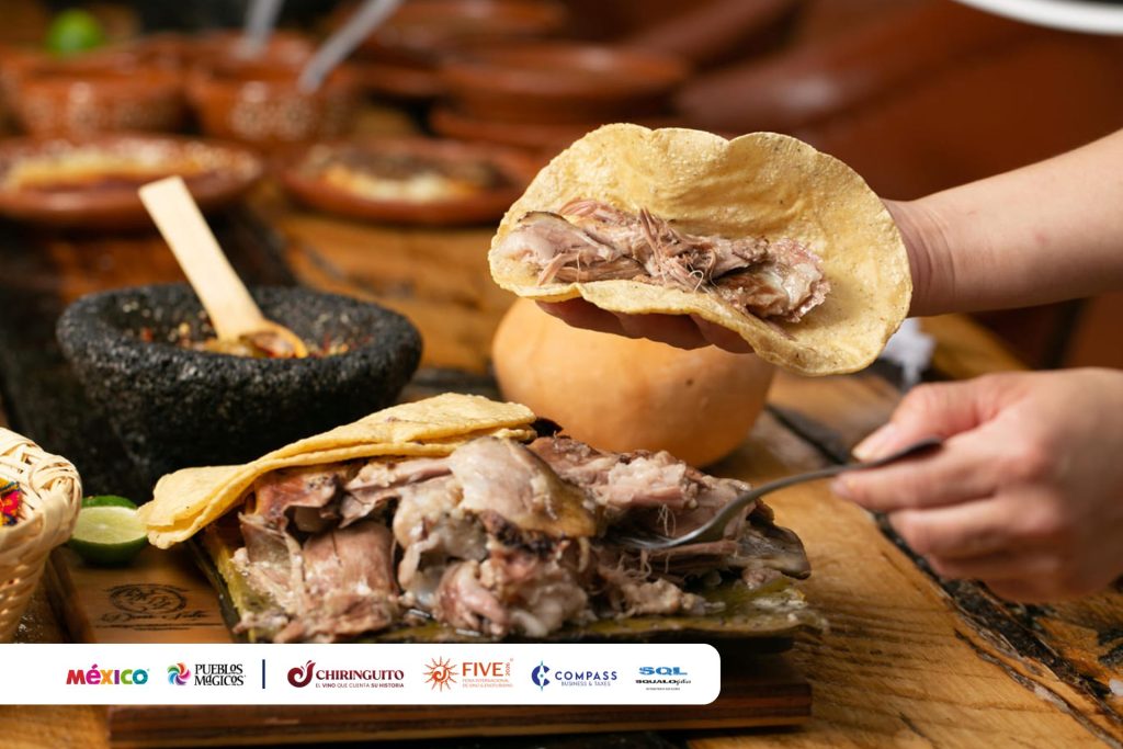Barbacoa de borrego cocida en hoyo de tierra con leña de encino.