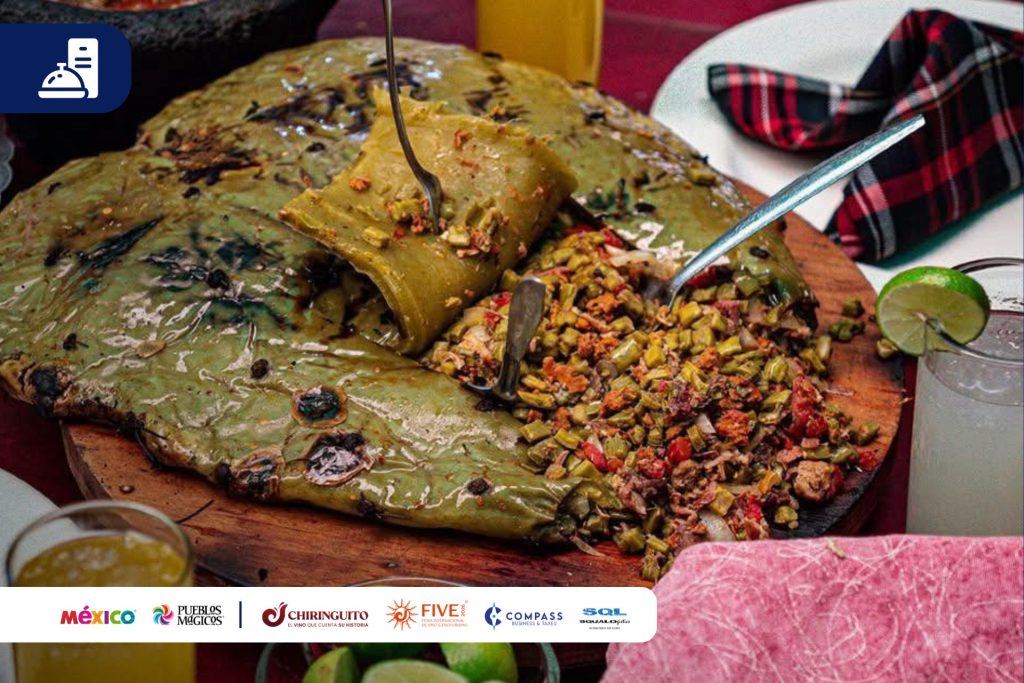 Es el plato estrella. Consiste en una penca de maguey rellena de nopales picados, cebolla, ajo, chiles y orégano. En versiones más completas se le añade carne (bistec, chorizo o pollo) o incluso mariscos. Se asa a las brasas, lo que le da un sabor ahumado y una textura única.