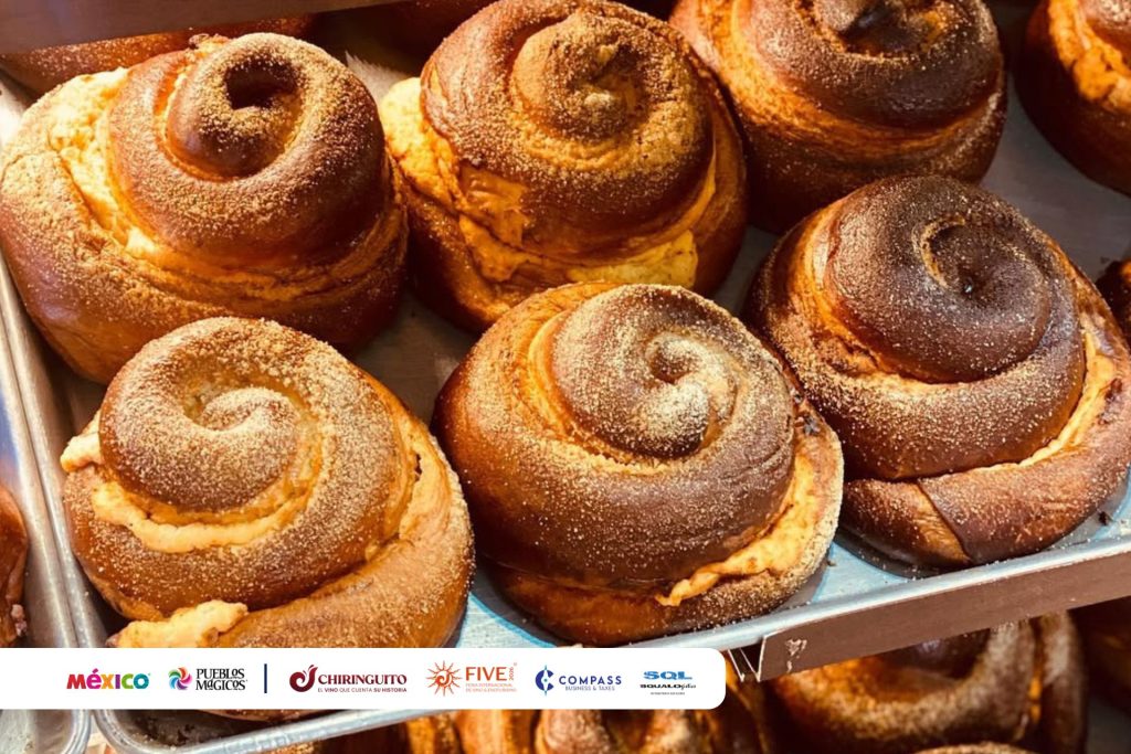 Famoso en la región, este pan dulce tiene una textura densa y suave, con un relleno o base de queso crema y queso ranchero de la zona. Es el acompañante ideal para el café de olla por las mañanas o tardes frescas.