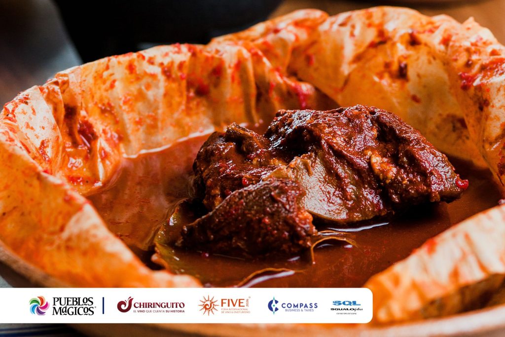 Carne (ya sea de pollo, carnero o conejo) marinada en una salsa de chiles secos, envuelta en la fina película de la penca del maguey y cocida al vapor.